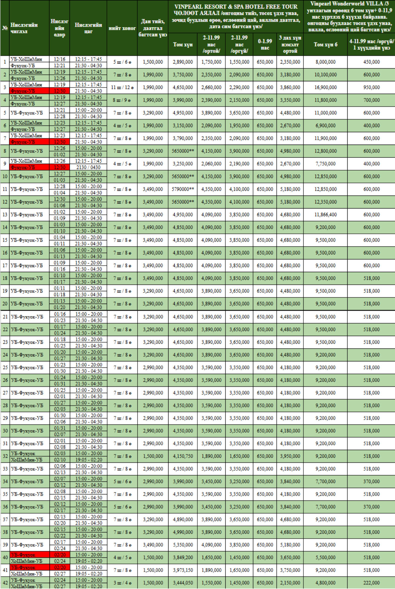 Аялал гарах өдрүүд: 2025.12.21-28, 12.26-01.02, 12.27-01.03, 12.28-01.04, 12.30-01.06........