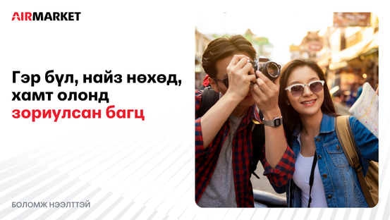 АэрМаркет нь хувь хүн, гэр бүл, найз нөхөд, хамт олон, байгууллагад зориулсан аяллын хөтөлбөрийг хэрэгцээнд нь нийцүүлэн боловсруулах боломжийг санал болгож байна.