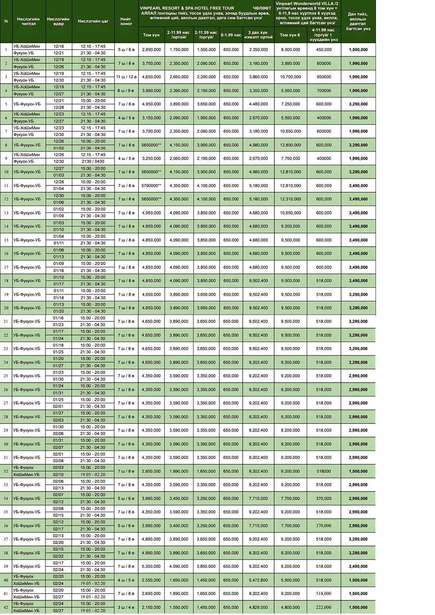Аялал гарах өдрүүд: 2025.12.21-28, 12.26-01.02, 12.27-01.03, 12.28-01.04, 12.30-01.06........