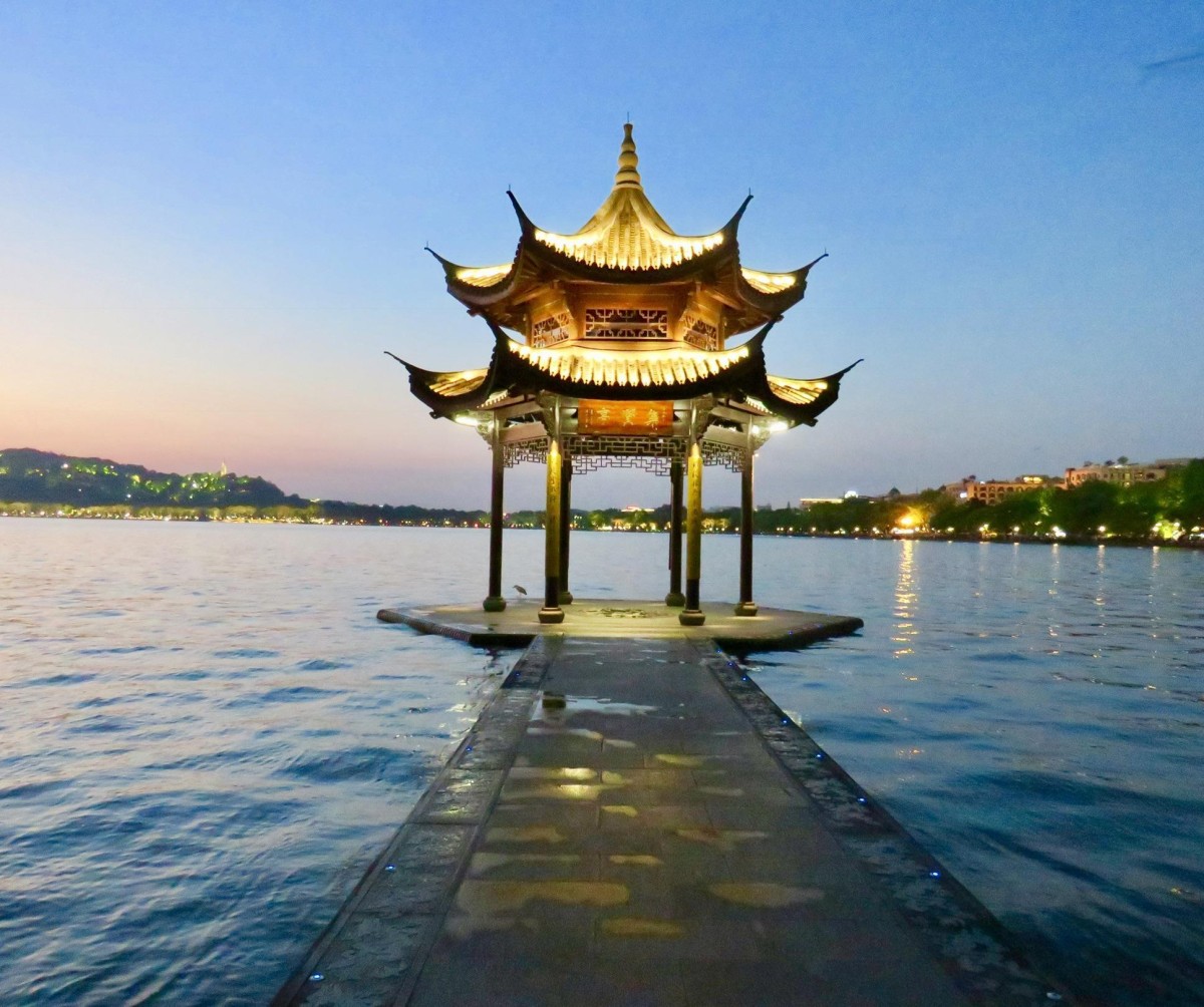 Өглөөний цайны дараа Ханжоу хотыг зорьно. Хятадын хамгийн алдартай Тэнгэрт диваажин, Газарт Ханжоу гэж нэрээ дуудуулсан уул, ус, ургамал дэлхий бүрэн бүрдсэн гэгдэх Ханжоу хот явах замдаа Wuzhen Dongzha нэртэй усан дээрх тосгоныг үзнэ.