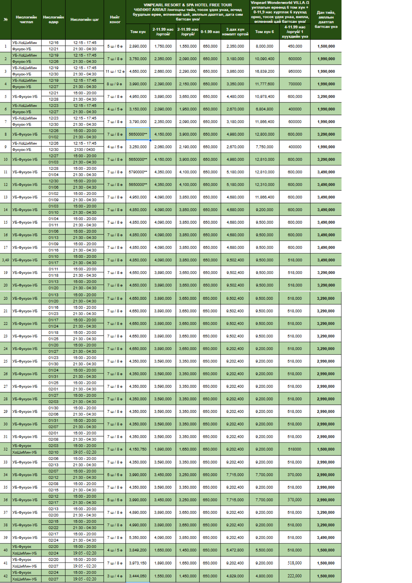 Аялал гарах өдрүүд: 2025.12.21-28, 12.26-01.02, 12.27-01.03, 12.28-01.04, 12.30-01.06........