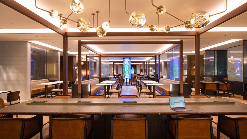 Кореан Эйр нь зорчигчдод онгоцонд суухаасаа өмнө тансаг аялалыг мэдрэх боломжийг олгох үүднээс нисэх онгоцны буудлын лоунжаа дээд зэрэглэлийн орчинтой болгон өөрчилжээ. Үүдний орох хэсгээсээ эхлэн тансаг зочид буудлын лобби руу орчихсон мэт мэдрэмж төрүүлэх юм. Лоунжид хоолны хэсэг, шүршүүр, хурлын өрөө, эрүүл мэндийн хэсэг зэрэг олон янзын зорчигчдийн хэрэгцээ шаардлагад тохируулсан орчинг төгс байдлаар бүрдүүлжээ. Таван одтой зочид буудлын ахлах тогооч нар газар дээр нь хоолоо хийдэг "Live Station"-ыг нэвтрүүлсэн нь мөн онгоцны буудлын лоунжийн салбарт гарсан шинэлэг байдал гэж дүгнэгдэж байна.